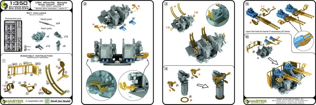 MASTER SM-350-094 - 1:350 Amerykańskie poczwórne działko Bofors 40 mm/56 wersja 2