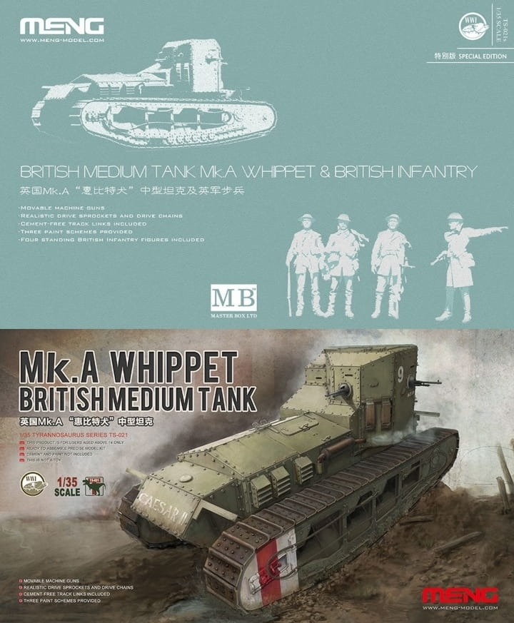 MENG MODEL TS021S - 1:35 Mk.A Whippet & British Infantry - British Medium Tank (Special Edition w/ Figures)
