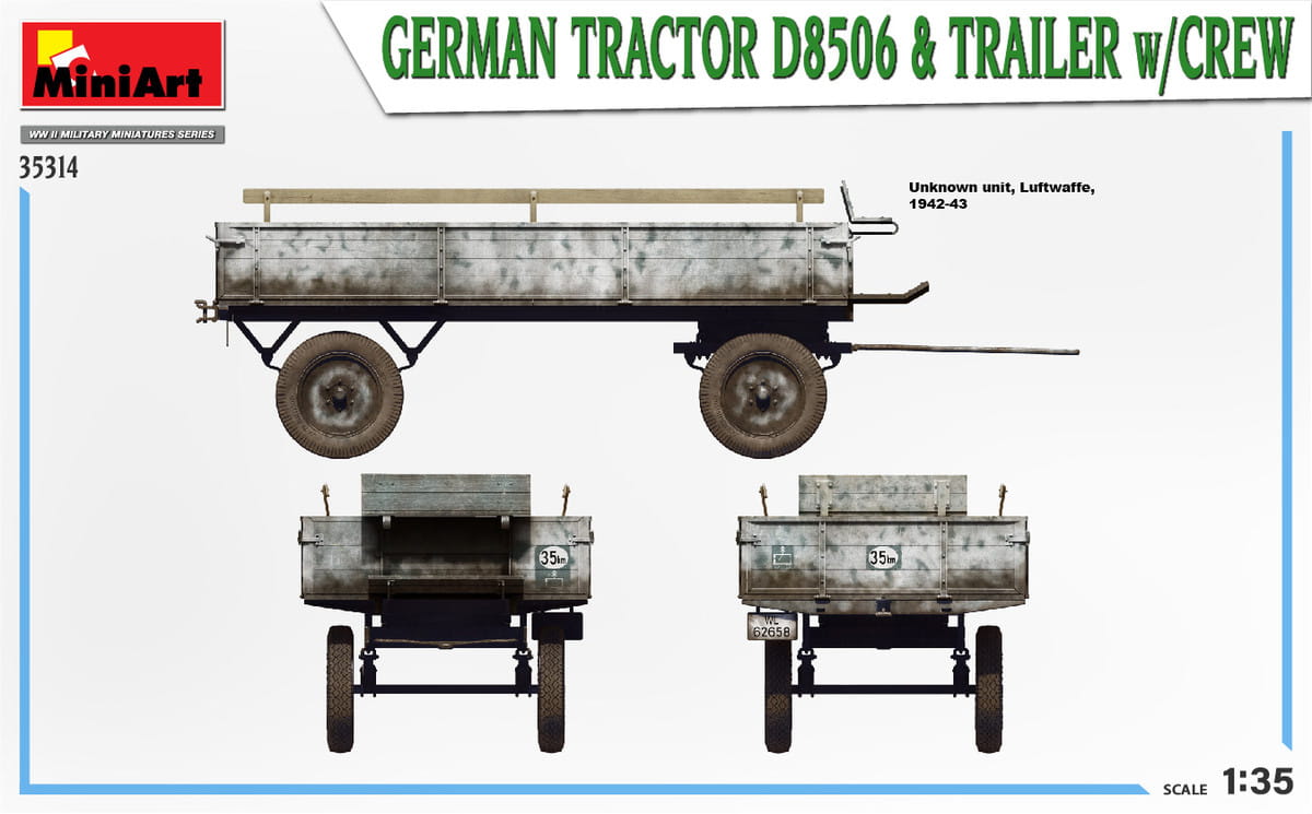 MINIART 35314 - 1:35 German Tractor D8506 & Trailer w/ crew