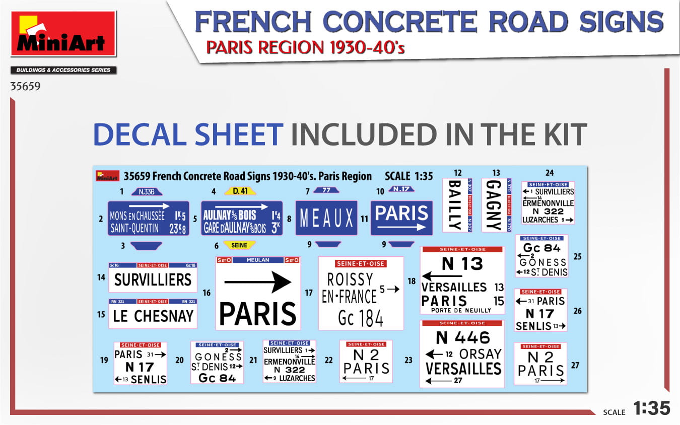 MINIART 35659 - 1:35 French Concrete Road Signs Paris Region 1930-40s