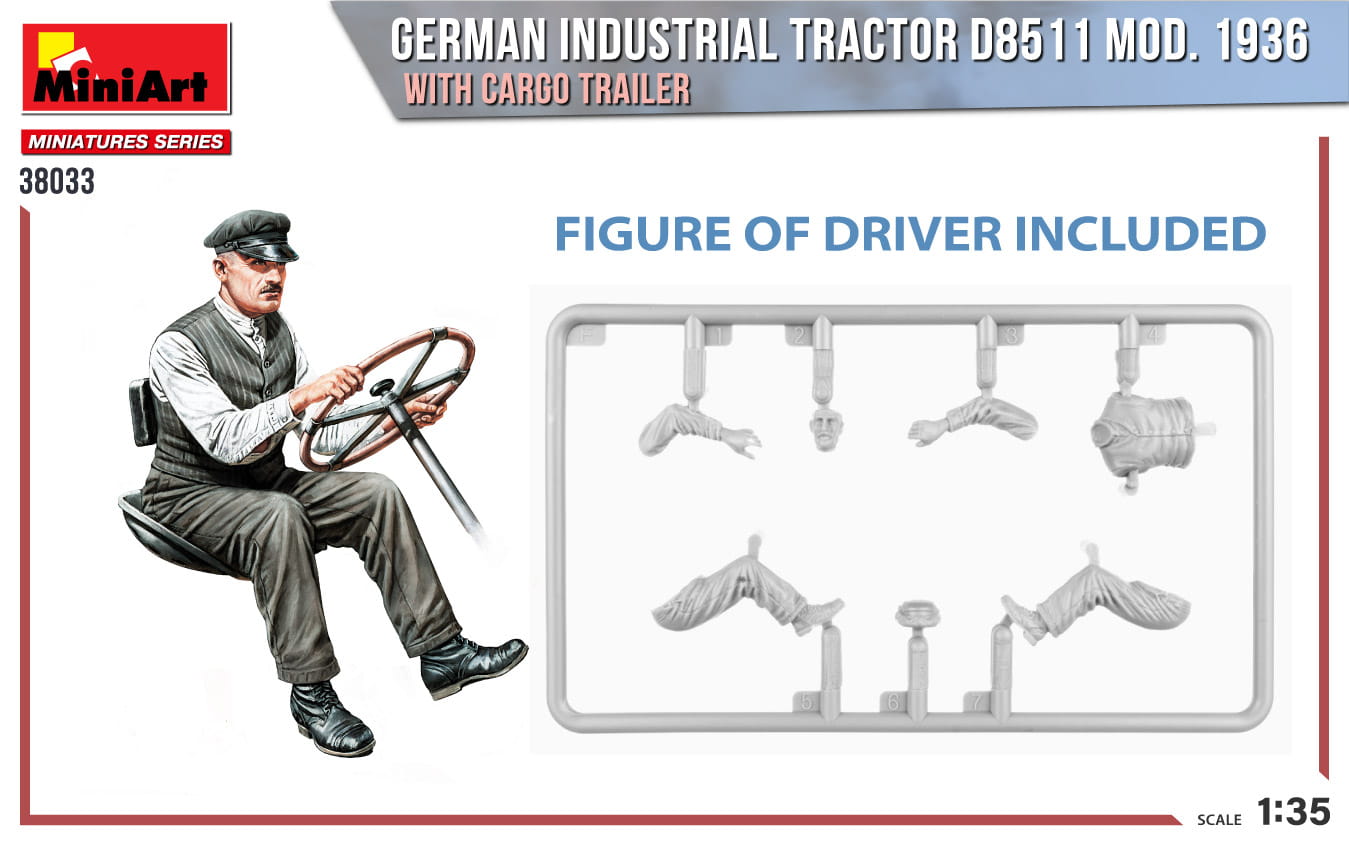 MINIART 38033 - 1:35 German Industrial Tractor D8511 mod.1936 with cargo trailer