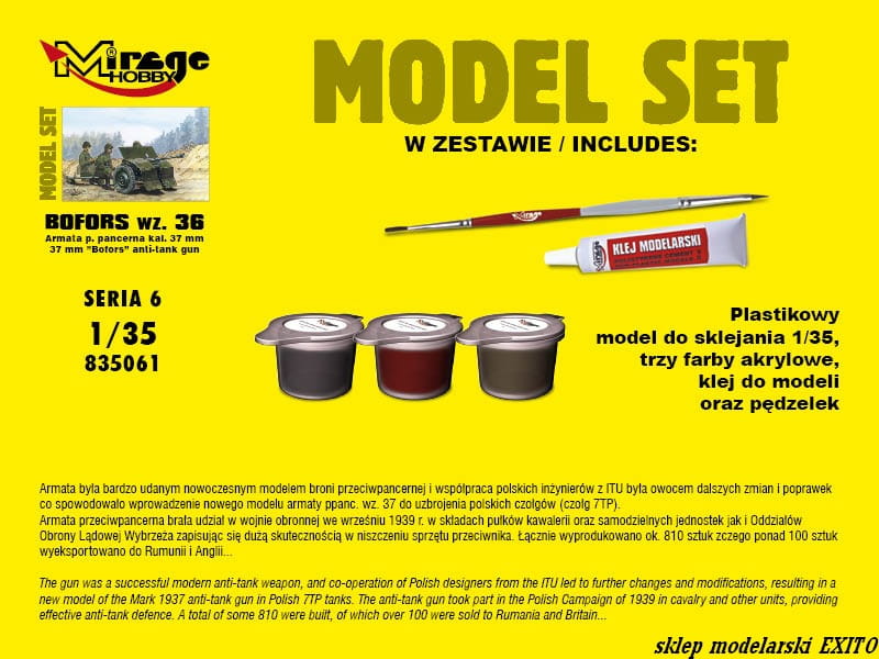 MIRAGE 835061 - 1:35 Bofors wz. 36 Polska armata p-panc kal. 37 mm) - Model Set