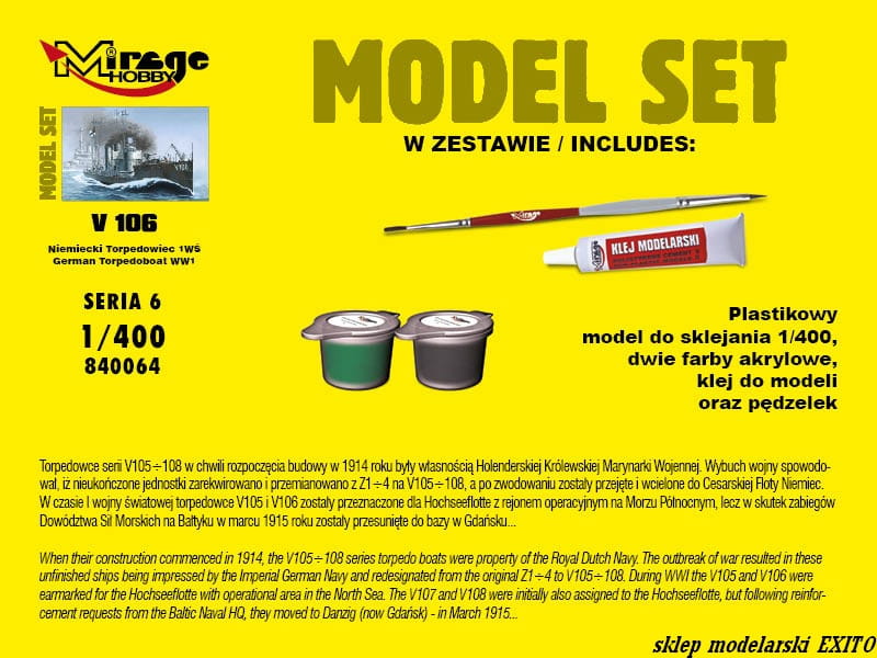 MIRAGE 840064 - 1:400 V106 Niemiecki okręt torpedowy - Model Set