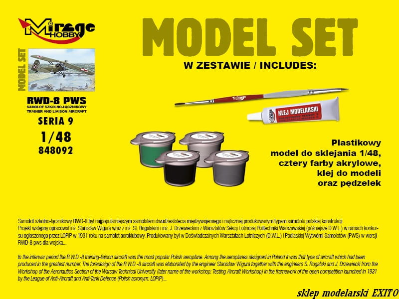MIRAGE 848092 - 1:48 RWD-8 (PWS) polski samolot szkolno-łącznikowy - Model Set