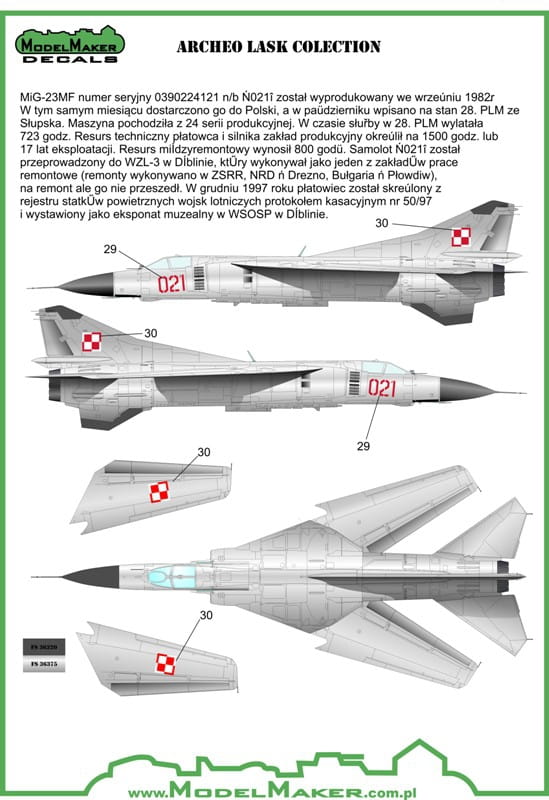 MODELMAKER D48088 - 1:48 Archeo Lask colection (Lim-2, MiG-21PF/MF, MiG-23MF, MiG-29A, Iryda, PZL-130, TS-11 Iskra, Mi-2, Mi-24D, TS-8 Bies, Su-22M4)