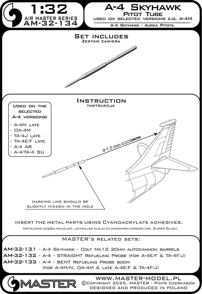 Master AM-32-134 - 1:32 A-4 Skyhawk rurka Pitota na stateczniku pionowym używana na wybranych wersjach np. A-4M, OA-4M, TA-4J