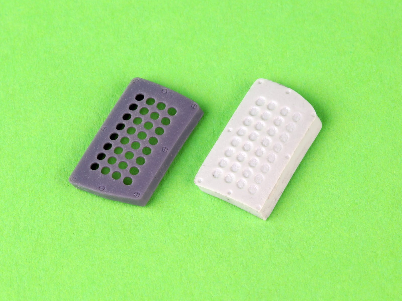 Element wykonany w technologii druku 3D umożliwia uzyskanie bardzo drobnych detali oraz realistycznego odwzorowania powierzchni. Dzięki temu możliwe jest znaczące podniesienie poziomu szczegółowości modelu, szczególnie w widocznym obszarze wlotu powietrza.