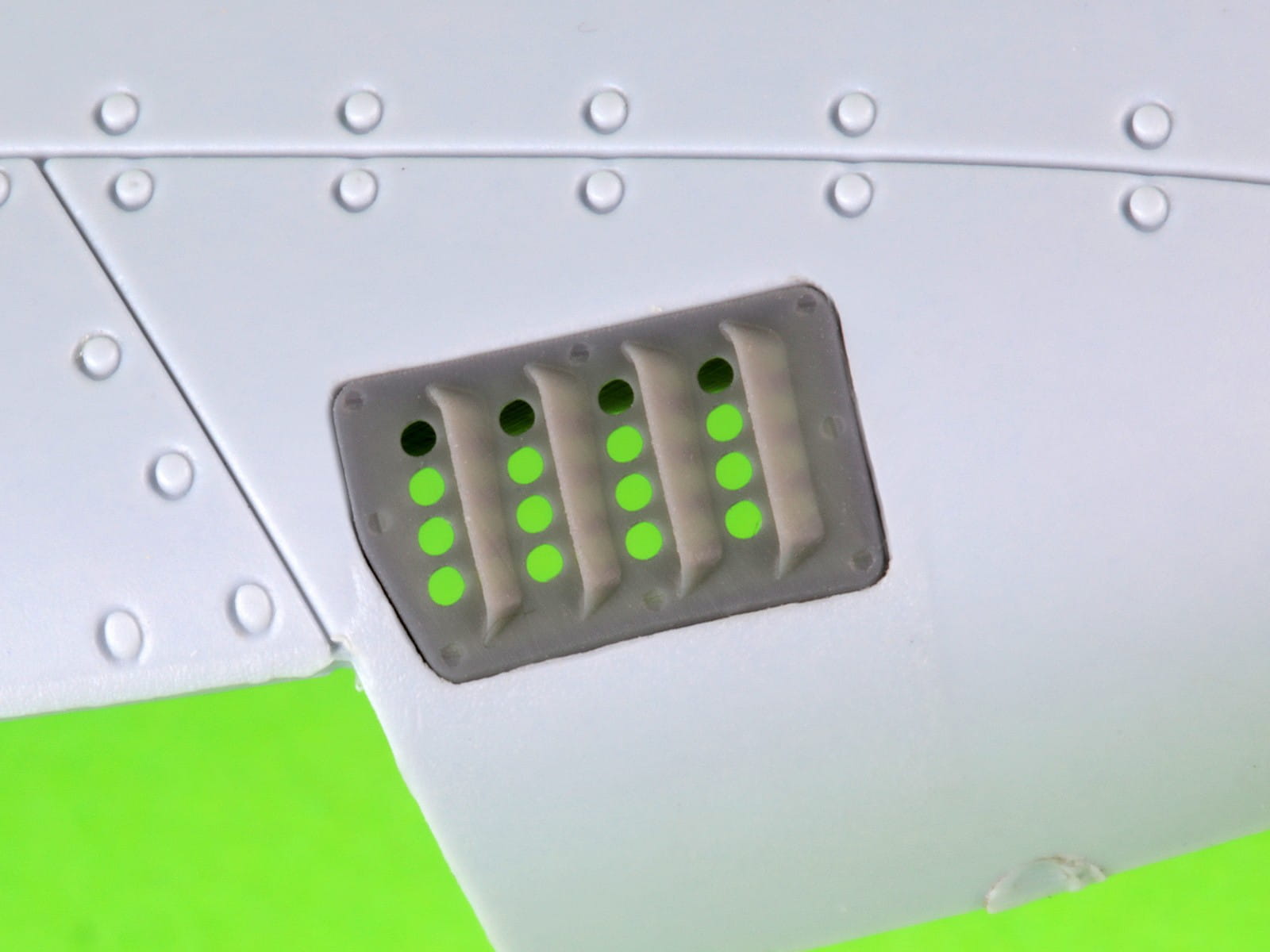 Element wykonany w technologii druku 3D pozwala uzyskać bardzo drobne i ostre odwzorowanie żaluzji oraz powierzchni detalu. Zestaw umożliwia wierne odwzorowanie konkretnej wersji samolotu używanej przez RAF i stanowi doskonałe uzupełnienie modelu.