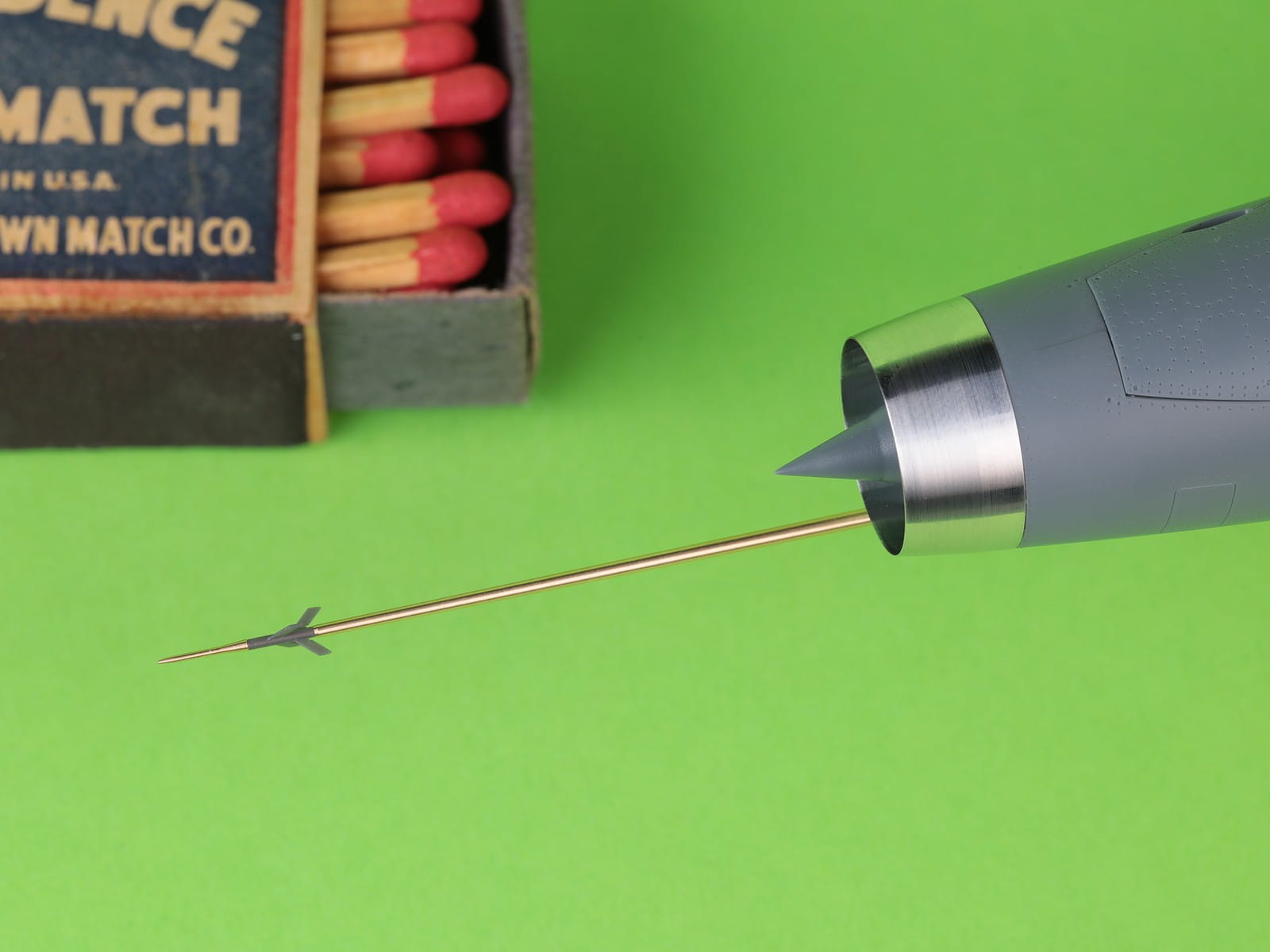 Metalowa rurka Pitota pozwala uzyskać cienki, precyzyjny element o właściwych proporcjach, znacznie lepszy niż odpowiednik plastikowy. Dodatkowe elementy żywiczne umożliwiają wierne odwzorowanie detali mocowania.