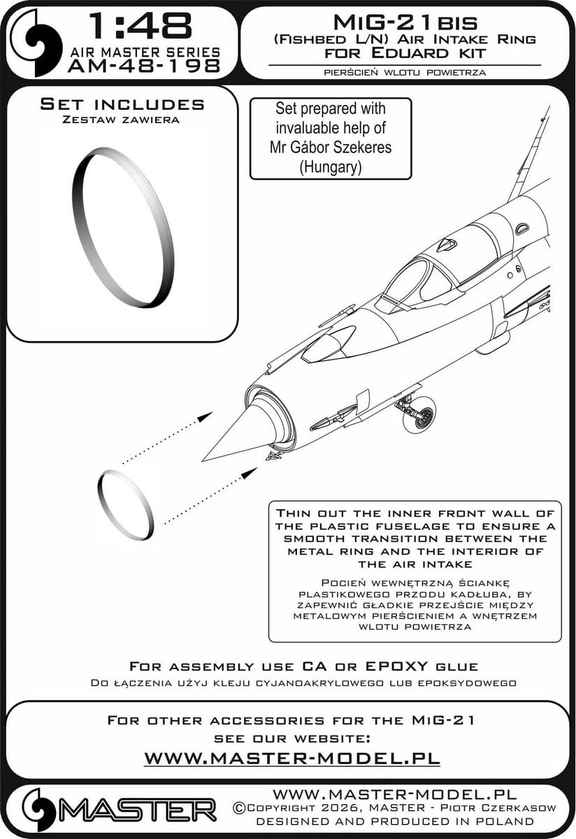 Master AM-48-198 - 1:48 MiG-21bis Fishbed L/N - metalowy pierścień wlotu powietrza