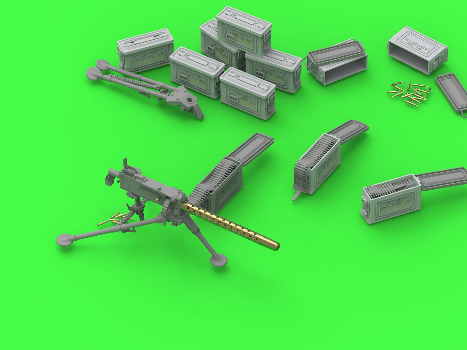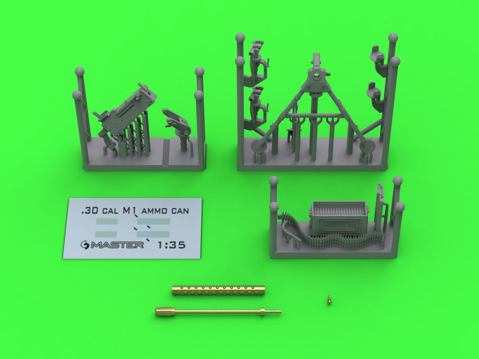 Zestaw Master Model GM-35-088 przedstawia amerykański karabin maszynowy Browning M1919 A4 kal. .30 (7,62 mm) zamontowany na trójnogu M2 wraz ze skrzynką amunicyjną M1. Zestaw łączy toczoną metalową lufę z bardzo szczegółowymi elementami wykonanymi w technologii druku 3D, co pozwala uzyskać wysoki poziom realizmu.