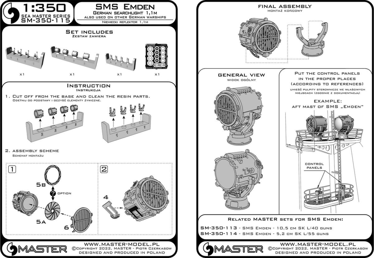 Master SM-350-115 - 1:350 Niemieckie reflektory 1,1m krążownika SMS Emden
