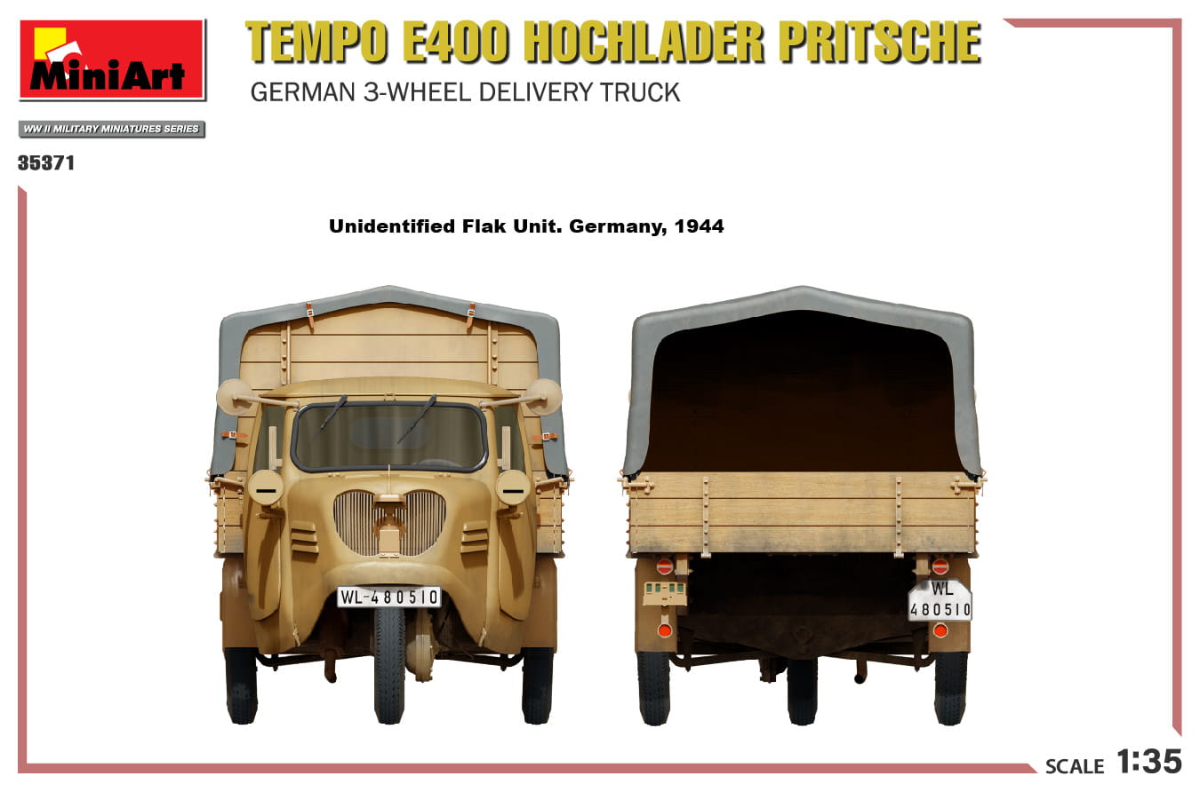 Miniart 35371 - 1:35 Tempo E400 Hochlader Pritsche German 3-Wheeled Delivery Truck