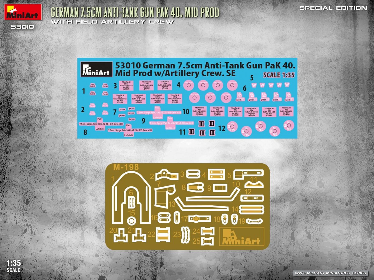 Miniart 53010 - 1:35 German 7,5 cm Anti-Tank Gun Pak 40. Mid Prod with Field Artillery Crew