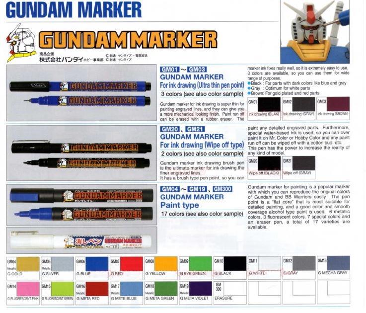 Seria markerów Mr.Hobby jest przeznaczona głównie do malowania i akcentowania detali modeli mechów z popularnej japońskiej serii Gundam, ale znajdą zastosowanie także do innych modeli plastikowych