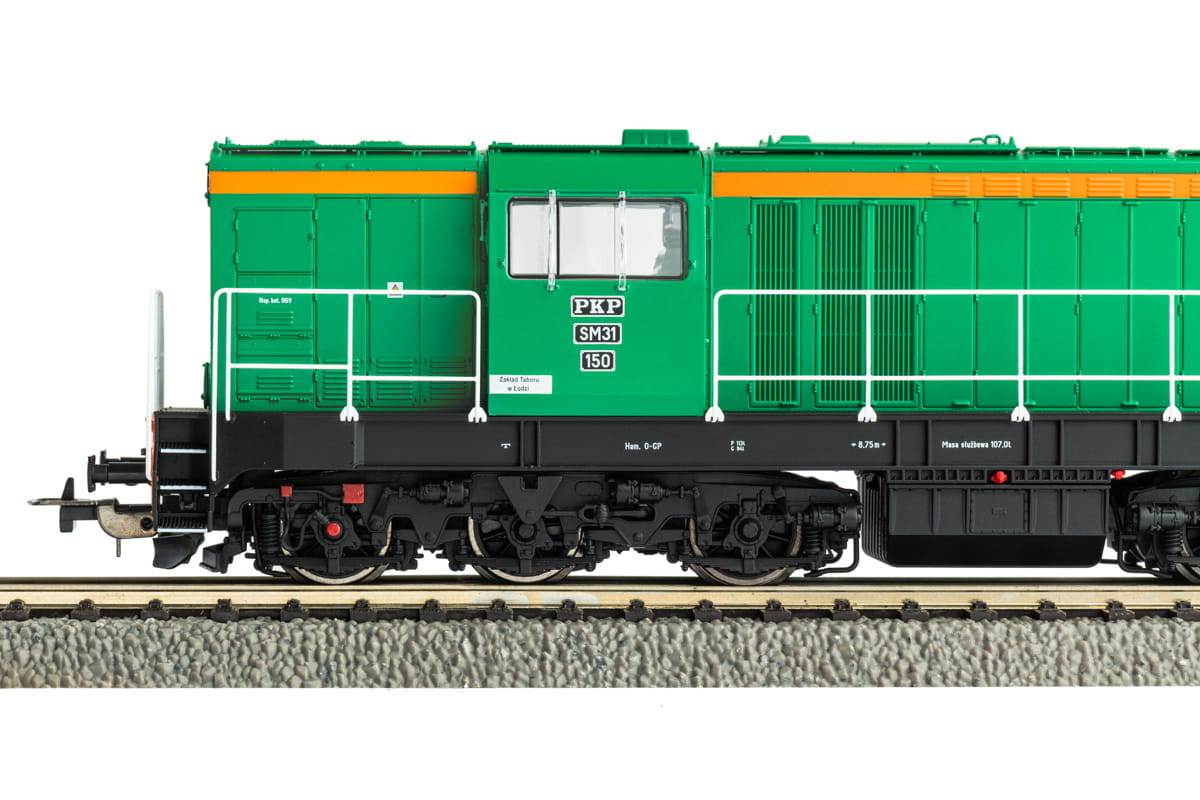 Model ciężkiej manewrowej lokomotywy spalinowej SM31 w barwach PKP z epoki V, opracowany w skali H0 przez firmę PIKO. Lokomotywa wyposażona jest w fabrycznie zamontowany dekoder dźwiękowy zgodny ze standardem PluX22 oraz oświetlenie LED. Seria Expert gwarantuje wysoki poziom detali, realistyczne dźwięki oraz płynne właściwości jezdne.