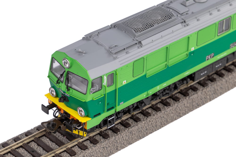 Model lokomotywy spalinowej SU46 w malowaniu PKP - Polskich Kolei Państwowych.