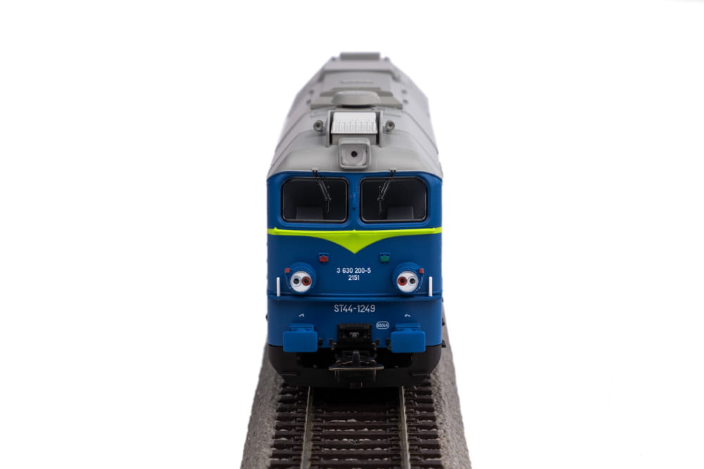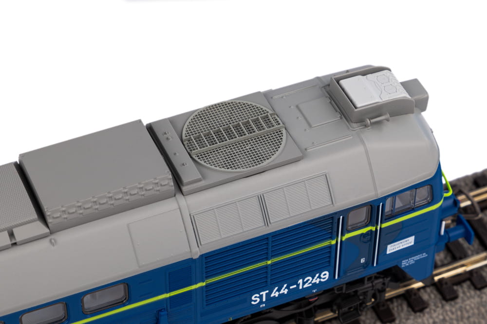 Model lokomotywy spalinowej ST44 w malowaniu PKP - Polskich Kolei Państwowych.