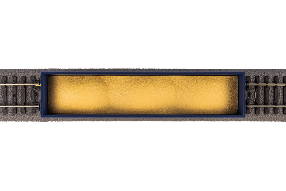 Zestaw zawiera dwa wagony wraz z imitacją ładunku piasku.