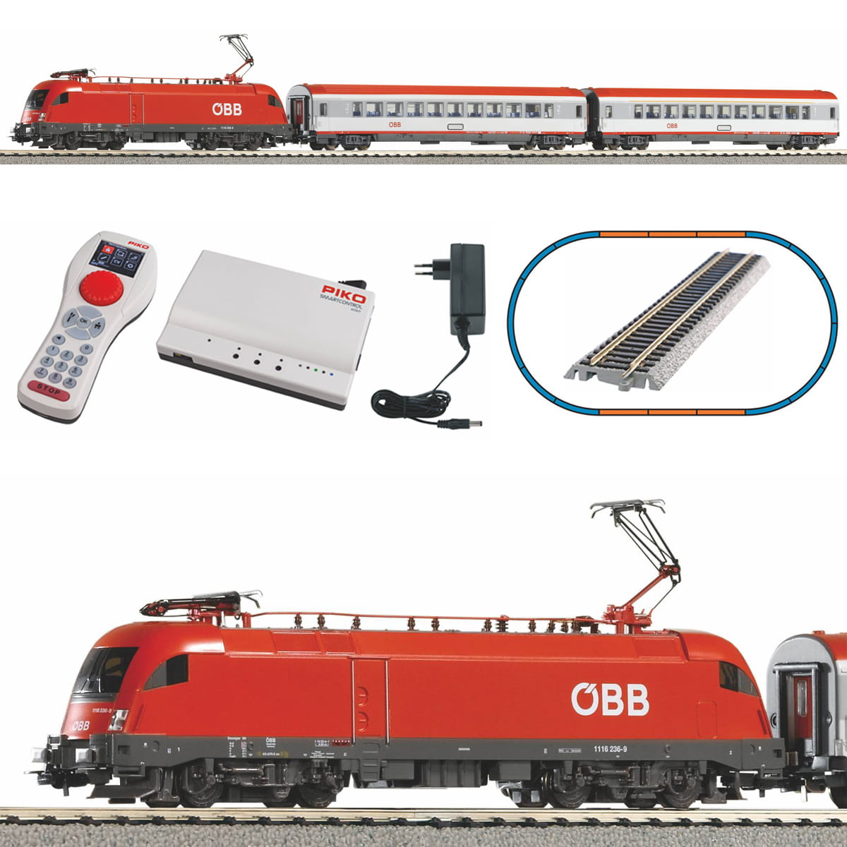 Gotowy do jazdy cyfrowy zestaw elektrycznej kolejki w skali 1/87 czyli H0. Zawiera wszystkie elementy niezbędne do uruchomienia. Modele lokomotywy i wagonów wykonane z plastiku i metalu są wysokiej jakości miniaturą rzeczywistych obiektów. Malowanie przedstawia pociąg używany przez koleje austriackie ÖBB w okresie epoki V czyli w latach 1990 - 2007.