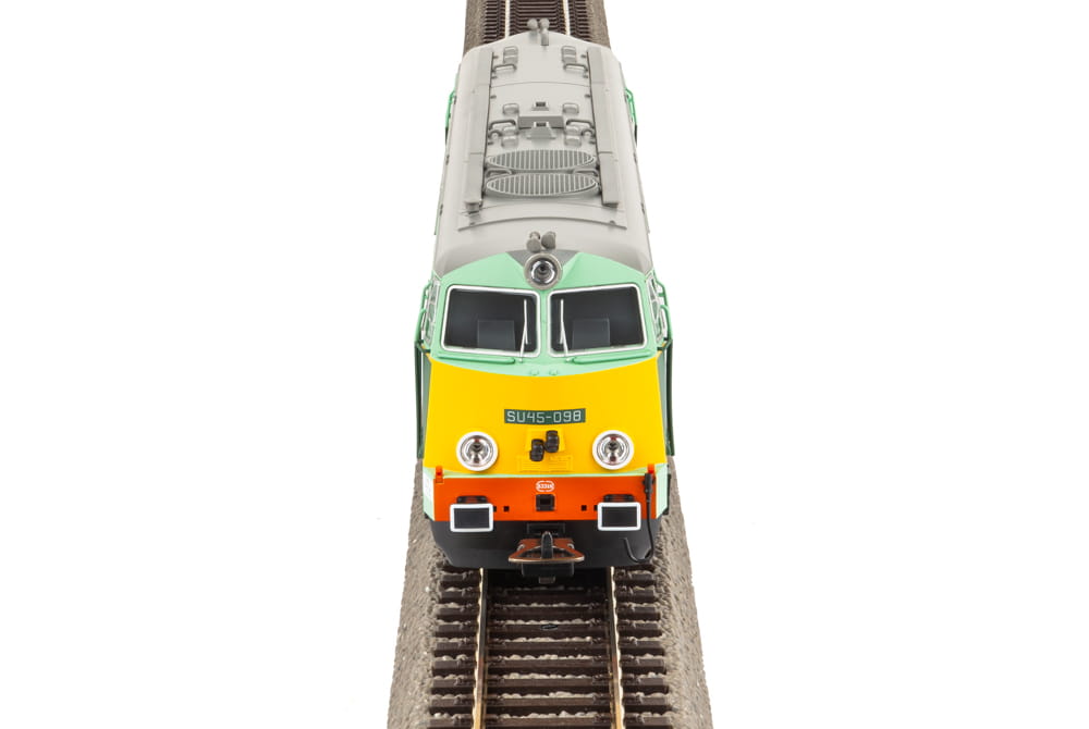 Wykonany z elementów plastikowych i metalowych model lokomotywy do kolejek elektrycznych w skali H0 czyli 1/87. Jest miniaturą spalinowozu typu SU45 o numerze bocznym 098. Malowanie przedstawia lokomotywę używaną przez PKP - Polskie Koleje Państwowe z okresu epoki V czyli w latach 1990 - 2007.