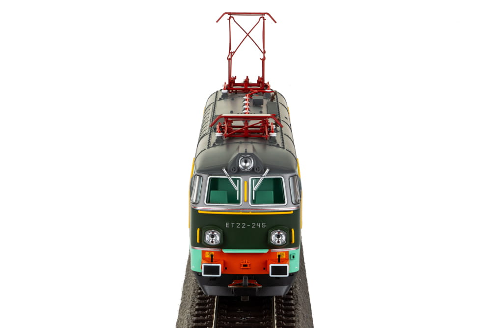 Wykonany z elementów plastikowych i metalowych model lokomotywy do kolejek elektrycznych w skali H0 czyli 1/87. Jest miniaturą elektrowozu ET22 u numerze własnym 245. Malowanie przedstawia lokomotywę używaną przez PKP - Polskie Koleje Państwowe z okresu epoki IV czyli z lat 1970 - 1990.
