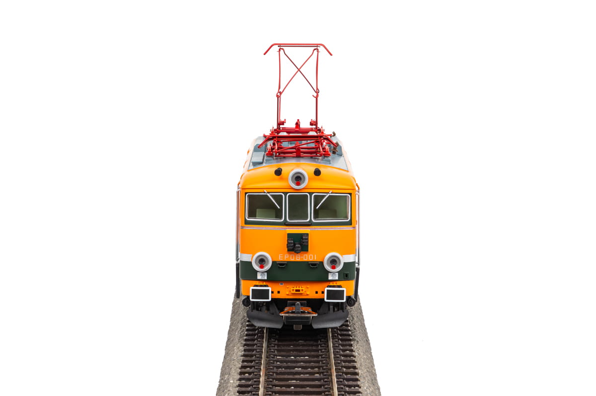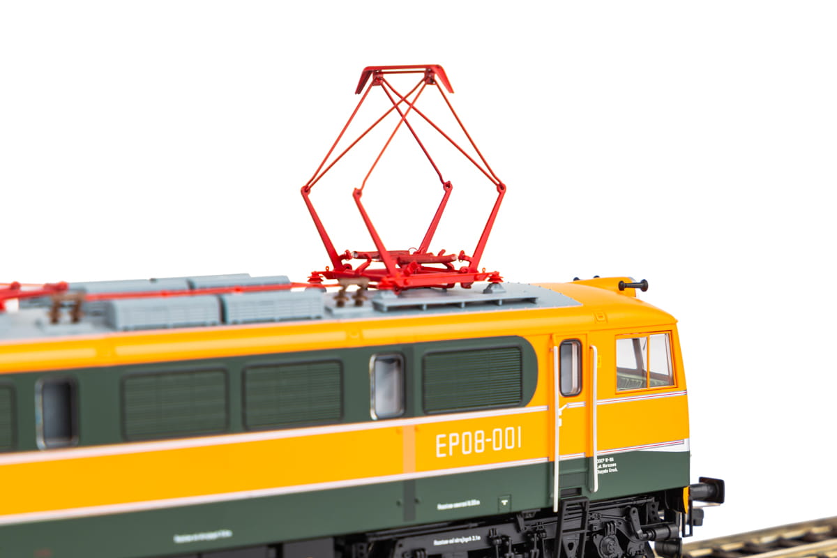 Wykonany z elementów plastikowych i metalowych model lokomotywy do kolejek elektrycznych w skali H0 czyli 1/87. Jest miniaturą elektrowozu typu EP08. Malowanie przedstawia lokomotywę używaną przez PKP - Polskie Koleje Państwowe z okresu epoki IV czyli z lat 1970 - 1990.