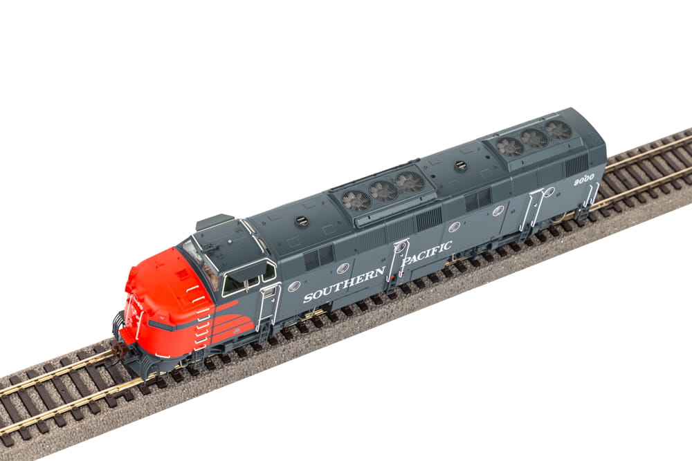Wykonany z elementów plastikowych i metalowych model do kolejek elektrycznych w skali H0 czyli 1/87. Jest miniaturą spalinowozu SP9000. Malowanie przedstawia lokomotywę używaną przez amerykańskie koleje Southern Pacific w trakcie epoki III czyli z lat 1945 - 1970.