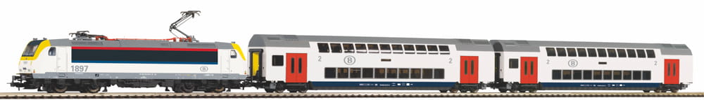 PIKO 97943 H0 - Kolejka elektryczna z lokomotywą BR 186 SNCB i 2 wagonami piętrowymi