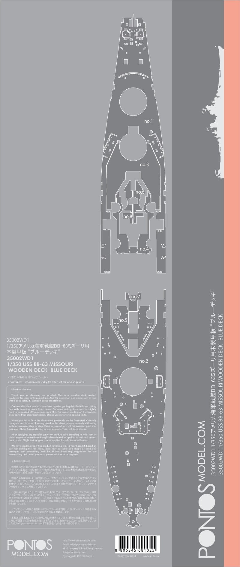 Pontos 35002WD1 - 1:350 USS BB-63 Missouri Wooden Deck set Blue Deck