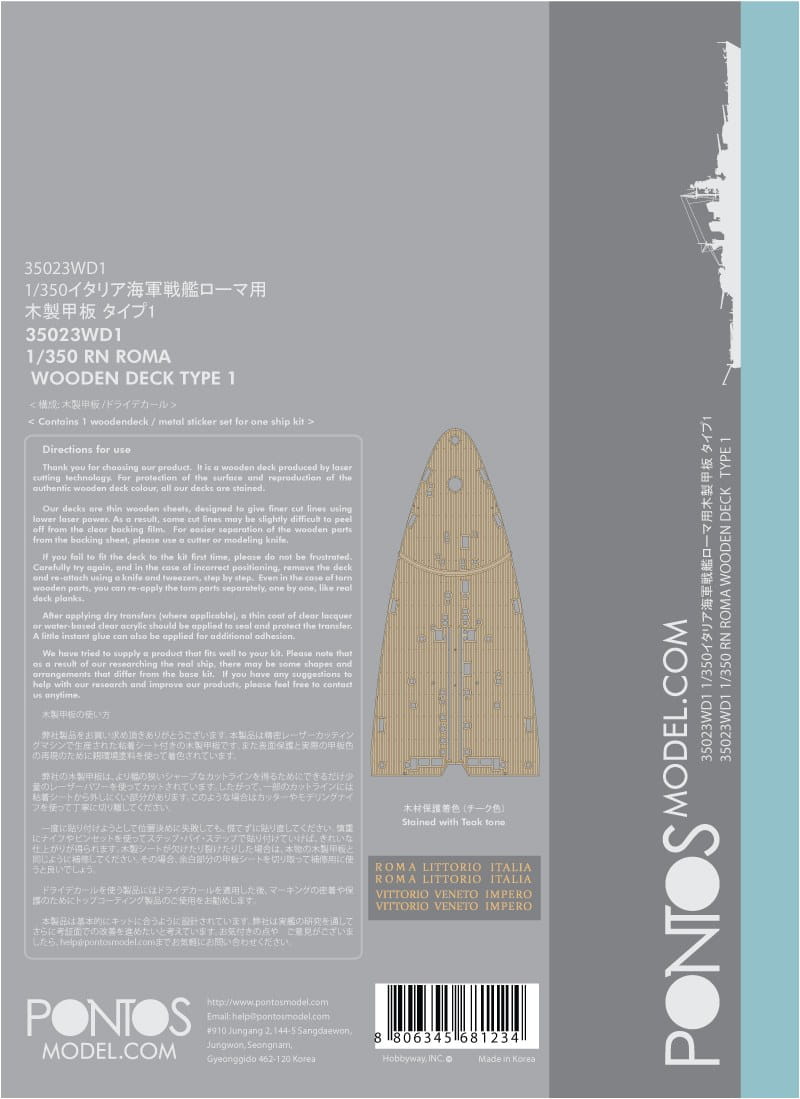Pontos 35023WD1 - 1:350 RN Roma Wooden deck set 1943