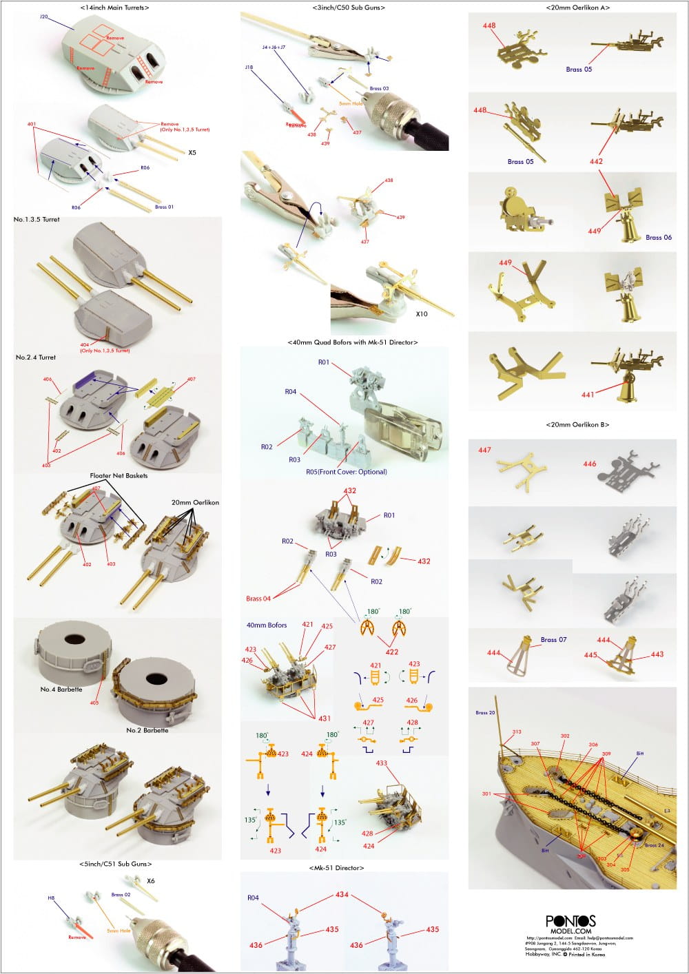Pontos 35024FB - 1:350 USS BB-35 Texas 1945 Detail up set 20B Deck Blue Decl