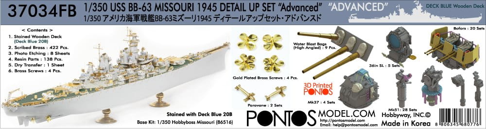 Pontos 37034FB - 1:350 USS BB-63 Missouri 1945 Detail up set 20B Deck Blue