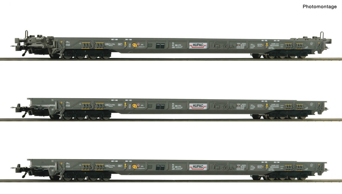 Przedsprzedaż Roco 6600092 H0 - Zestaw 3 wagonów platform 8-osiowych niskopodłogowych, HUPAC, ep.V-VI