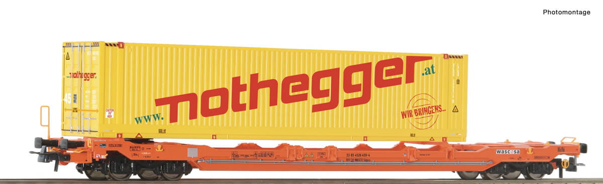 Przedsprzedaż Roco 6600178 H0 - Wagon platforma ntypu Sdgnss/T5 z kontenerem, Wascosa, ep.VI