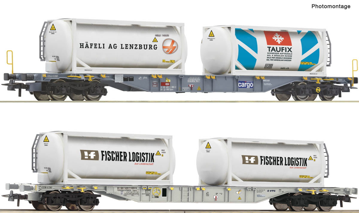 Przedsprzedaż Roco 6600231 H0 - Zestaw 2 wagonów platform typu Sgns z kontenerami cysternami, SBB, ep.V-VI