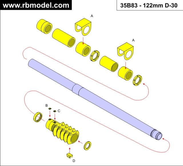 RB MODEL 35B83 - 1:35 Lufa 122mm L/38 D-30 do działa samobieznego T-34 / D-30 i haubicy 122mm D-30