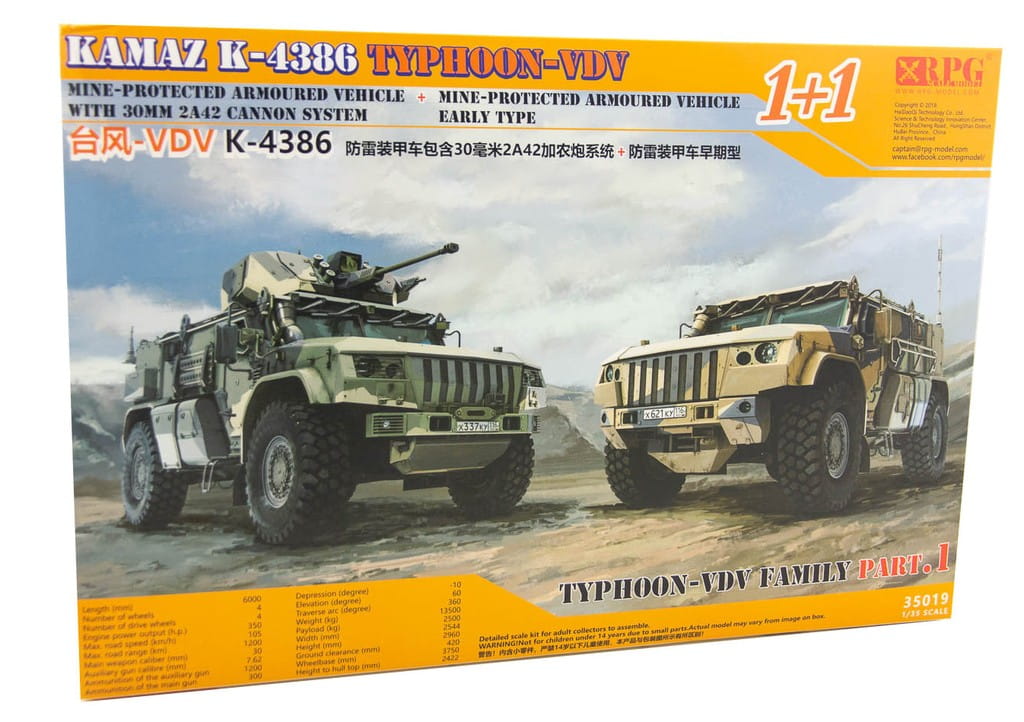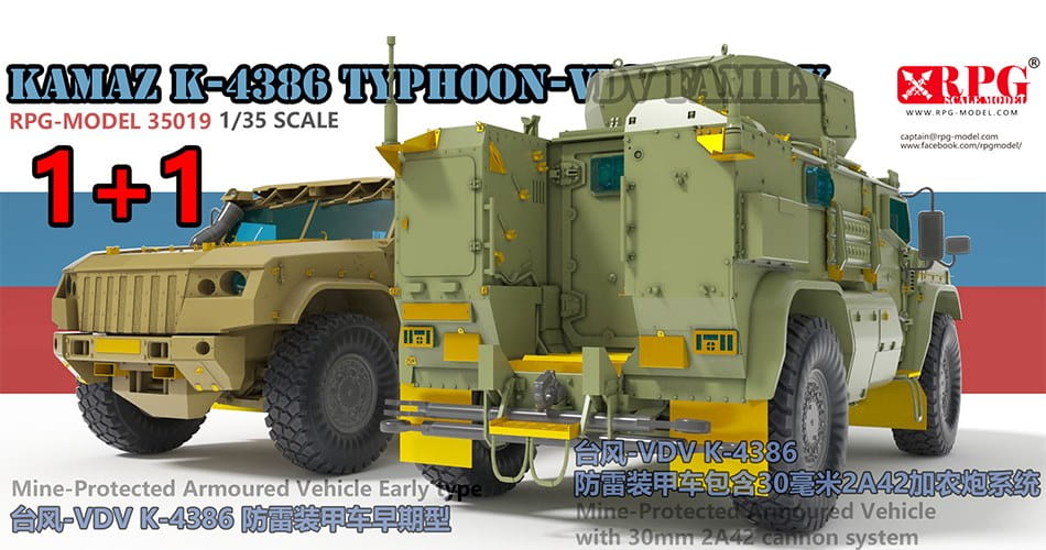 RPG MODEL 35019 - 1:35 Kamaz K-4386 Typhoon-VDV Family - VDV K-4386 with 30 mm 2A42 cannon system + VDV K-4386 Early Type (2 kits in the box)