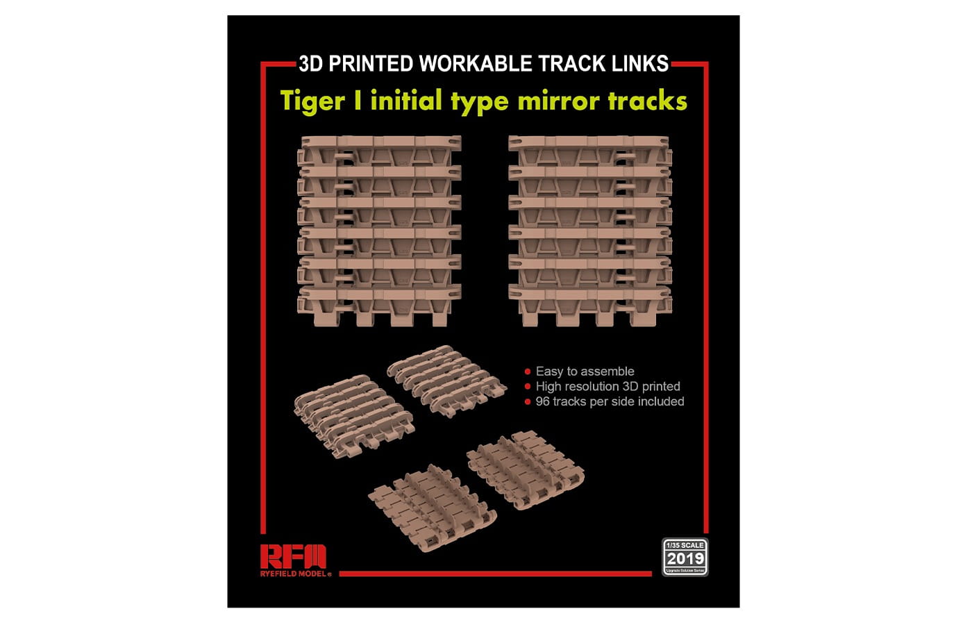 RYE FIELD MODEL 2019 - 1:35 3D Printed Workable Track Links Tiger I initial type mirror tracks
