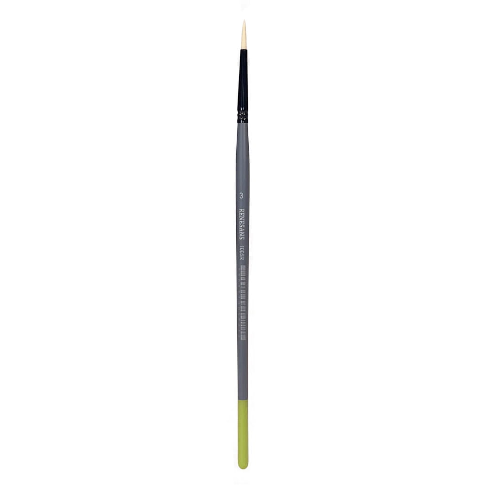 Pędzle z serii Renesans 1005R są idealne do akwareli, akryli, gwaszu i tuszu. Rozmiar 3 sprawdza się szczególnie przy malowaniu detali, drobnych elementów, ilustracji i miniatur. Dzięki elastycznemu włosiu pędzel zapewnia doskonałą kontrolę, równomierne prowadzenie farby i odporność na odkształcenia.