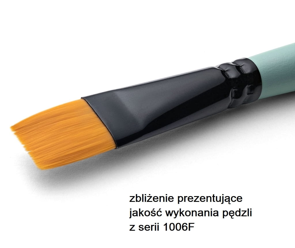 Pędzle Renesans serii 1006 z syntetycznym włosiem, to wysokiej jakości pędzle, które nadają się do malowania każdym rodzajem farb modelarskich. Posiadają syntetyczne włosie z czerwonego Toray'u, bardzo trwałe, dobrze trzymające kształt pędzla i łatwe w czyszczeniu z pozostałości farb. Szeroka gama dostępnych rozmiarów i kształtów sprawia, że bez trudu znajdzie się pędzel zarówno do większych powierzchni jak i do precyzyjnych detali. Pędzle z literą R w kodzie posiadają okrągłą końcówkę, F płaską, a FR to seria pędzli w kształcie kociego języka. Seria 1006 posiada krótką seledynowa rączke.