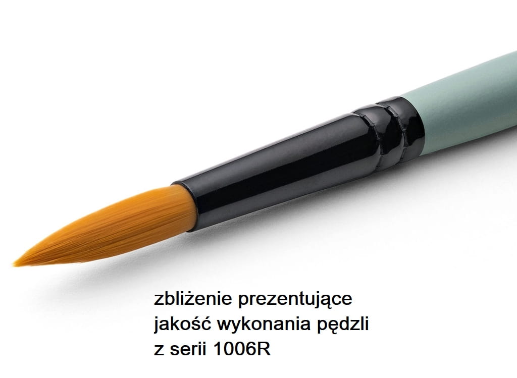 Pędzle Renesans serii 1006 z syntetycznym włosiem, to wysokiej jakości pędzle, które nadają się do malowania każdym rodzajem farb modelarskich. Posiadają syntetyczne włosie z czerwonego Toray'u, bardzo trwałe, dobrze trzymające kształt pędzla i łatwe w czyszczeniu z pozostałości farb. Szeroka gama dostępnych rozmiarów i kształtów sprawia, że bez trudu znajdzie się pędzel zarówno do większych powierzchni jak i do precyzyjnych detali. Pędzle z literą R w kodzie posiadają okrągłą końcówkę, F płaską, a FR to seria pędzli w kształcie kociego języka. Seria 1006 posiada krótką seledynowa rączke.