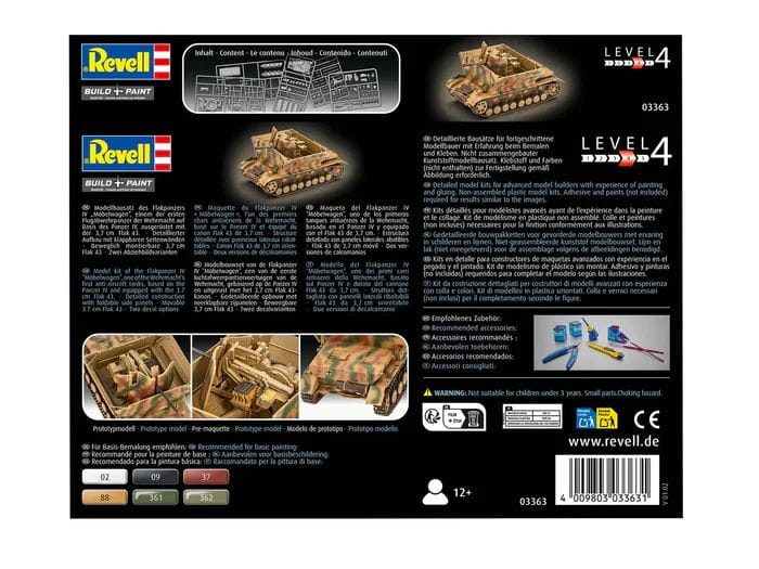 Revell 03363 przedstawia model niemieckiego samobieżnego działa przeciwlotniczego Flakpanzer IV „Möbelwagen” w skali 1:72. Pojazd ten został opracowany jako mobilny system obrony przeciwlotniczej dla jednostek pancernych Wehrmachtu w końcowym okresie II wojny światowej.