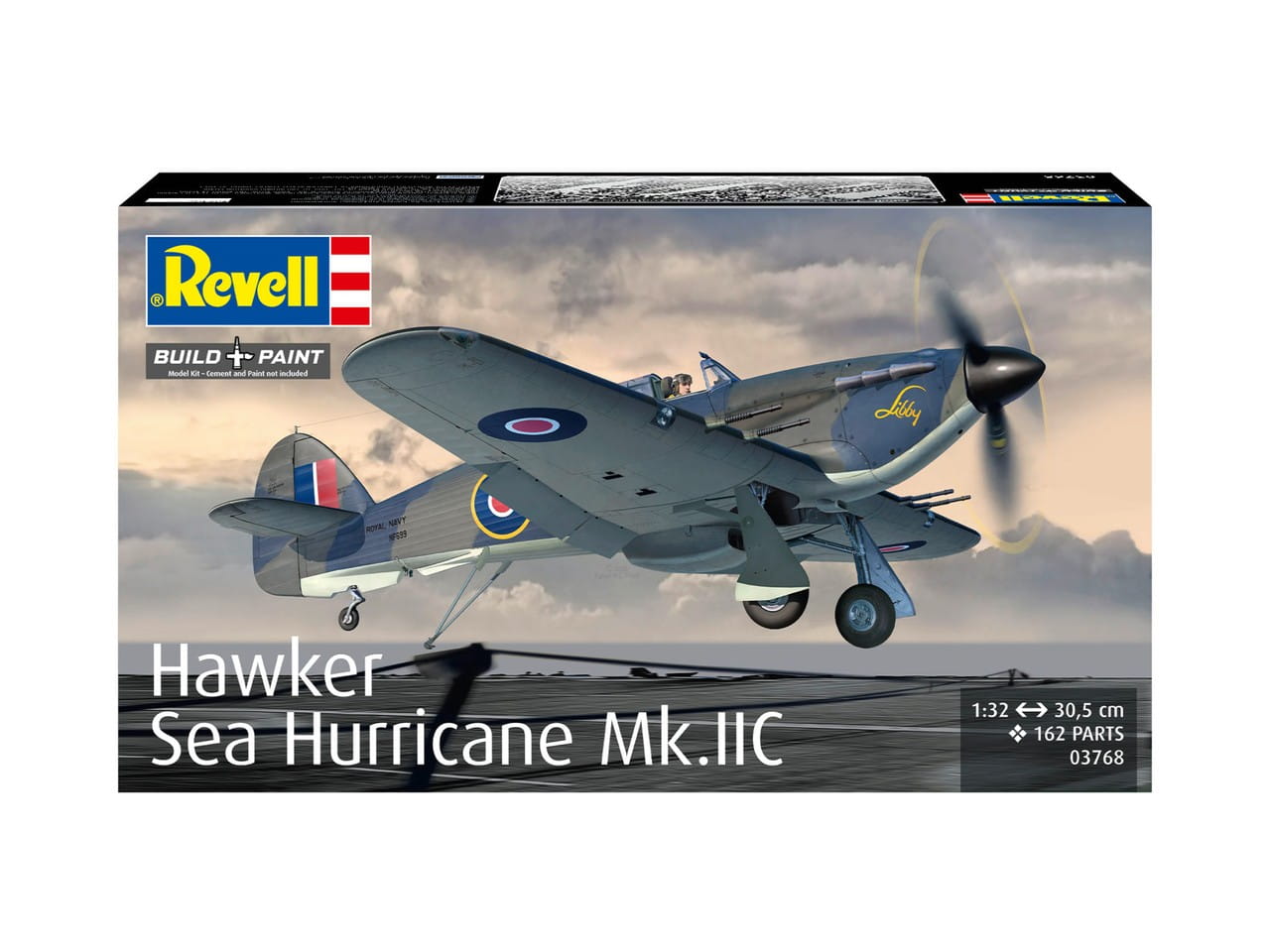 Revell 03768 to wysokiej jakości model plastikowy przedstawiający wersję pokładową brytyjskiego myśliwca Hawker Hurricane – Sea Hurricane Mk.IIC, używaną przez Fleet Air Arm w latach 1942–1943. Zestaw w skali 1:32 pozwala na zbudowanie szczegółowego modelu z pełnym uzbrojeniem, realistyczną kabiną pilota oraz opcjonalnymi elementami wyposażenia.