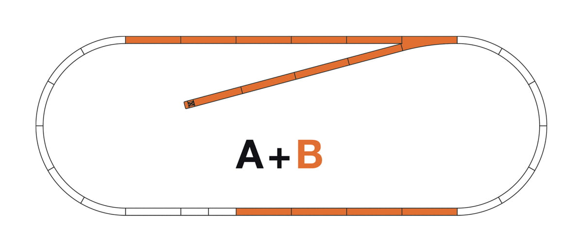 Po połączeniu zestawów A i B wymagane miejsce na makiecie wynosi ok. 240 × 100 cm.
