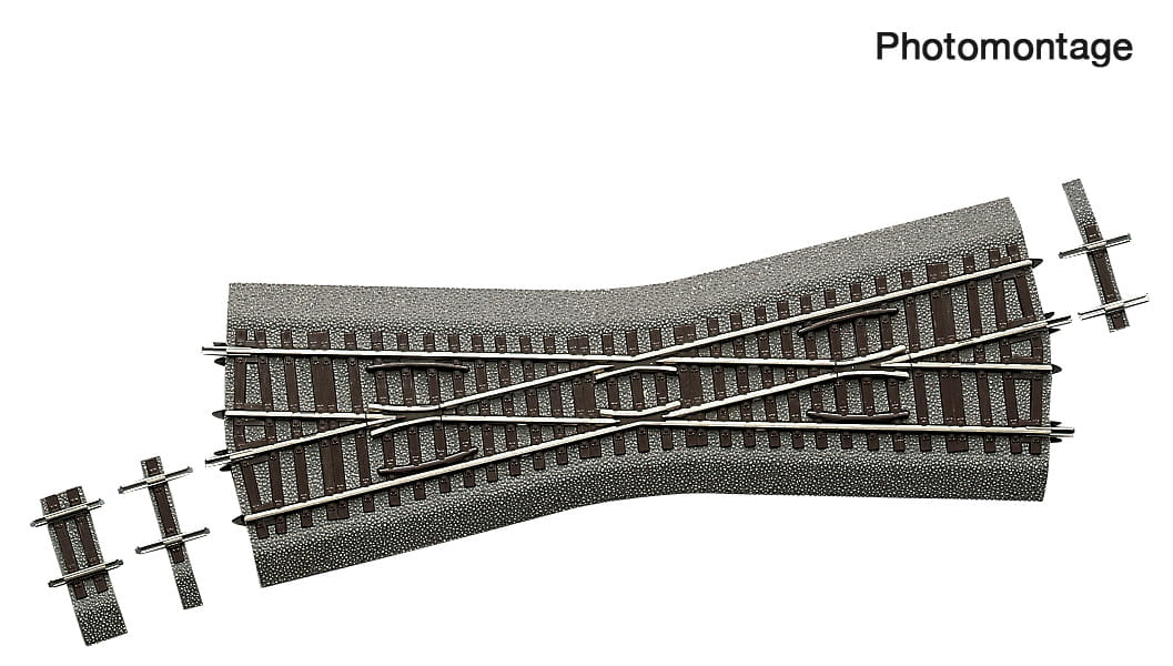 Element przeznaczony do systemu torów RocoLine z podsypką. Skrzyżowanie nie zawiera ruchomych części. Nasyp może wymagać przycięcia w miejscu połączeń z innymi torami – dołączone szablony umożliwiają precyzyjne dopasowanie.