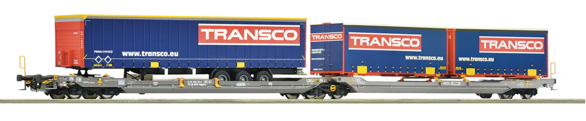 Roco 6600113 H0 - Podwójny wagon platforma typu T3000e z naczepami, HUPAC, ep.V-VI