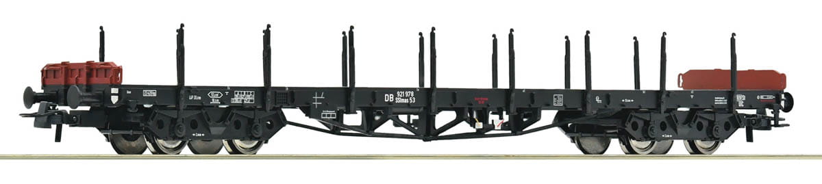 Roco 6600189 to realistycznie odwzorowany czteroosiowy wagon platforma z kłonicami, należący do serii SSlmas 53 Deutsche Bundesbahn. Konstrukcja wagonu pozwalała na bezpieczny transport dłużyc, elementów stalowych, drewnianych i innych ładunków wymagających bocznego zabezpieczenia. Model wiernie oddaje charakter pojazdu z epoki III i idealnie pasuje do historycznych składów towarowych DB.