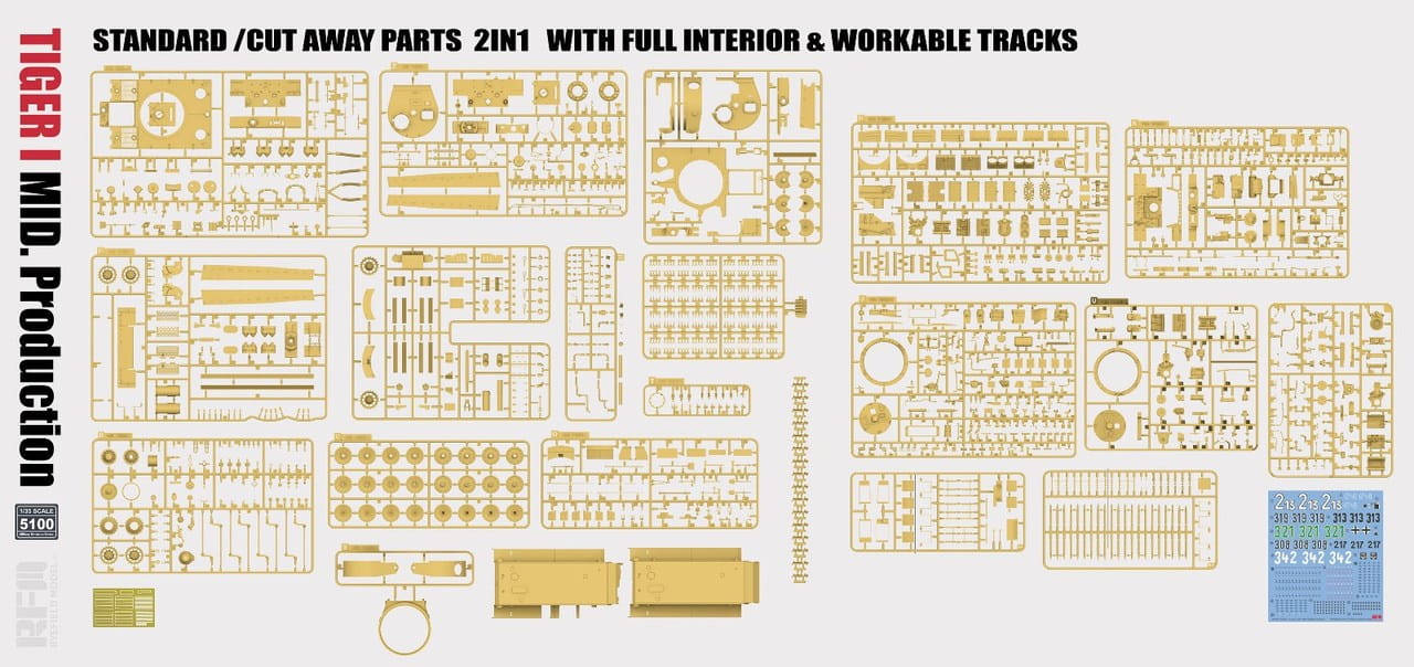 Rye Field Model 5100 - 1:35 Tiger I Mid. Production w/ Full Interior