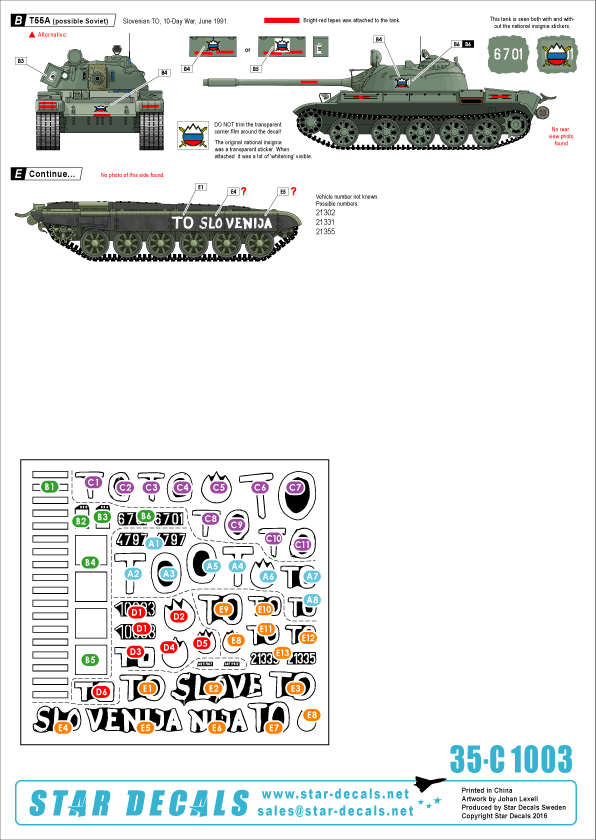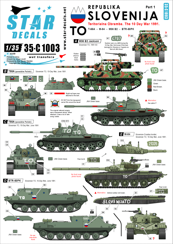 STAR DECALS 35-C1003 - 1:35 Slovenija # 1. TO, 1991 Ten-Day-War. M36B2, T-55, M-84, BTR-50PK
